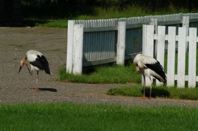 Es verspricht ein schöner Tag zu werden. Die Störche spielen übermütig mit