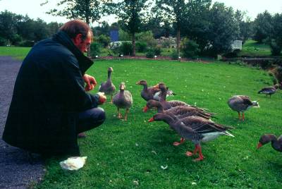 letztes Brot an die Gänse und Enten zu verfüttern.