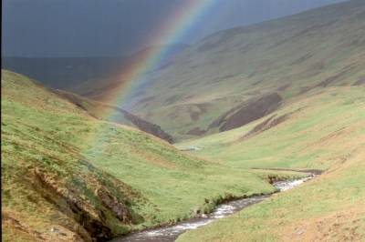 noch trocken. Wir laufen immer am Bach entlang und machen uns dann an den