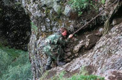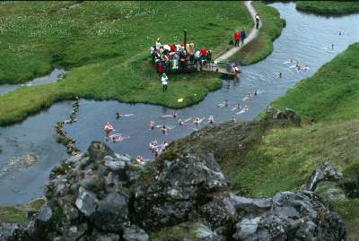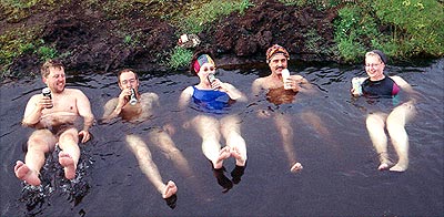 machten. Der anschließende Sprint zum 150m entfernten warmen Wasserfall war