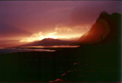 Ein wunderschönen Sonnenuntergang ließ auf besseres Wetter hoffen. Als wir uns gegen 24h in unseren Hano zurückzogen, hatten wir gerade noch 3°C .....