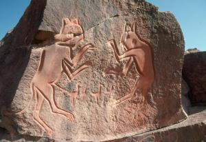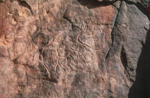 Pit & Karin haben sich in der Zwischen Zeit die Felsenwand näher angeschaut und dabei eine Unmenge von "Wandkratzen" gefunden. Warum diese in keinem der beiden Reiseführer erwähnt werden ist uns schleierhaft. Es sind einige sehr schöne darunter. Elefanten, Giraffen, Gnus, Affen....alles was das Herz begehrt und wir suchen nur nach Koordinaten.....