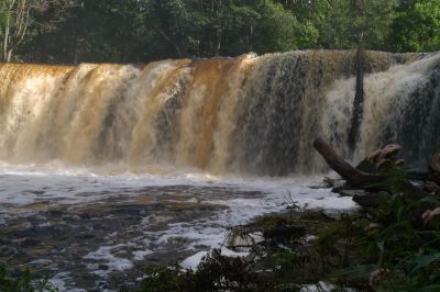 Nach 2Stunden sind wir gerade noch rechtzeitig von dem Regen zurück am Auto. Wir fahren weiter nach Karusekose von wo der "Ingatsi study trail" startet. Hier arbeitet jemand an einem "Einbaumboot", der für die Region üblich ist. Etwas weiter führt eine Hängebrücke über den Fluss, doch ein etwas mürrischer Mann meint wir könnten da nicht stehen bleiben und somit fahren wir die 100m zurück zum offiziellen Parkplatz. Der einzige noch freie Platz ist ein gigantisches Schlammloch....Also fahren wir, soweit es ohne Allrad geht rückwärts hinein und André stellt sich vor uns. In der Zwischenzeit hat es tüchtig angefangen zu regnen. Nach ca. 1,5 Stunden lässt der Regen nach und wir ziehen los. Nur André bleibt "daheim" und hütet die Autos.