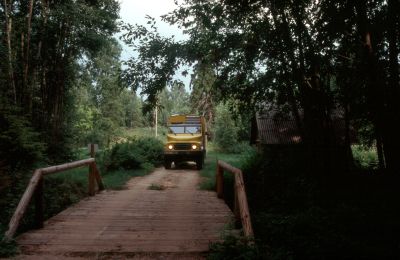 Auf der Suche nach einem Stellplatz für die Nacht fahren wir zum Aussichtsturm bei "Oksa". Der Turm ist 20m hoch und sogar ein Grillplatz und eine Toblerone stehen dort. Doch wie so oft gefallen uns bei dem schlechten Wetter die gefundenen Plätze nicht so besonders. Es ist halt überall nass! Der erste lag ganz weit hinten im Wald und endete in einem kleinem Rund. Gerade Platz genug für unsere zwei Autos und an die 100.000 Mücken und Bremsen......Der nächste ging über einen Parkplatz weiter am Fluss entlang hinter dem Wald auf eine Wiese. Doch diese ist schon von Kanuten besetzt. Also beschließen wir zurück nach Tõrama zu fahren und uns auf den Campingplatz an der Information zu stellen.