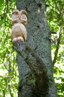 einem anderen Ast sitzt eine geschnitzte Eule und schaut auf uns herab. Vom Turm