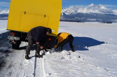 Tatra! Wir sahen den ein oder anderen Lkw an der Seite stehen und Schneeketten