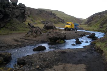 Direkt am Öldufell kommt dann der Wasserfall über den man hinweg fahren muss.