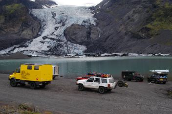 Auf der anderen Seite angekommen, kommen uns zwei Geländewagen entgegen. Der