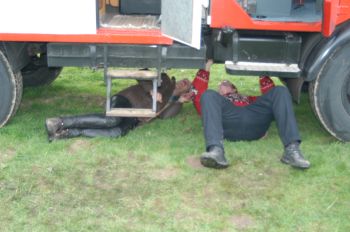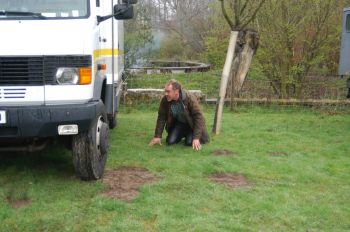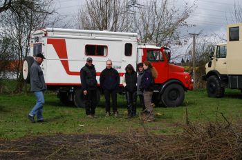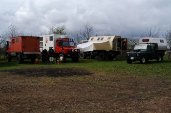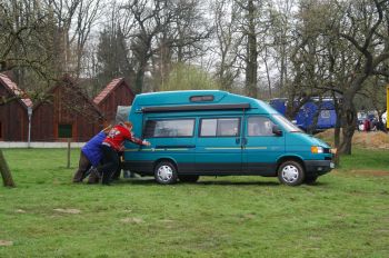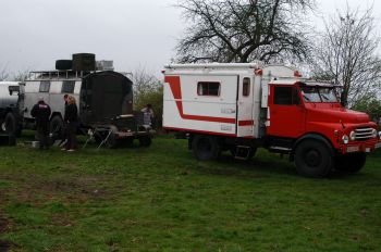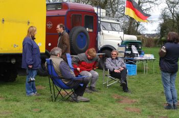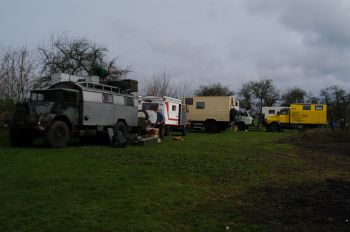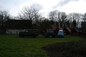 Nachdem Jan und Ralf uns lotsen, fahren wir erst einmal hinten auf die Wiese und