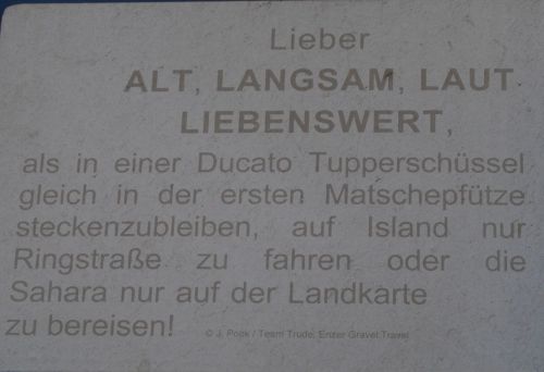 Diesen Text fanden wir auf "Trudes" Rückseite! Ist doch nett, oder!? | |