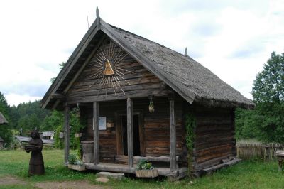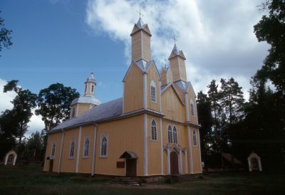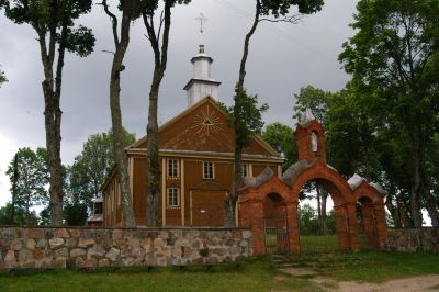An der kleinen Kirche am Ortseingang von "Marcinkonys"