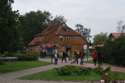 die Tourist-Info in Merkine. Nachdem wir unsere Rücksäcke mit Saft, Wasser,